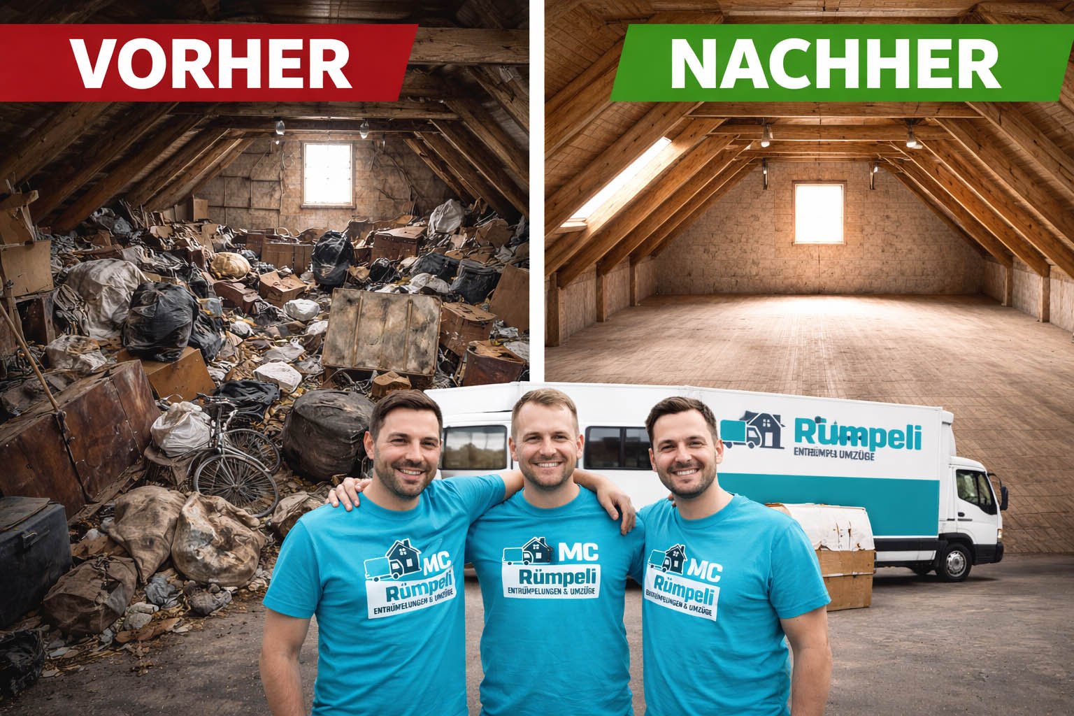 Bei MC Rümpeli erhalten Sie einen zuverlässigen Rundum-Service für Entrümpelungen, Haushaltsauflösungen, Umzüge und fachgerechte Entsorgungen. Wir arbeiten schnell, sauber und transparent – damit Sie ohne Stress und Aufwand wieder Platz und Ordnung gewinnen.
